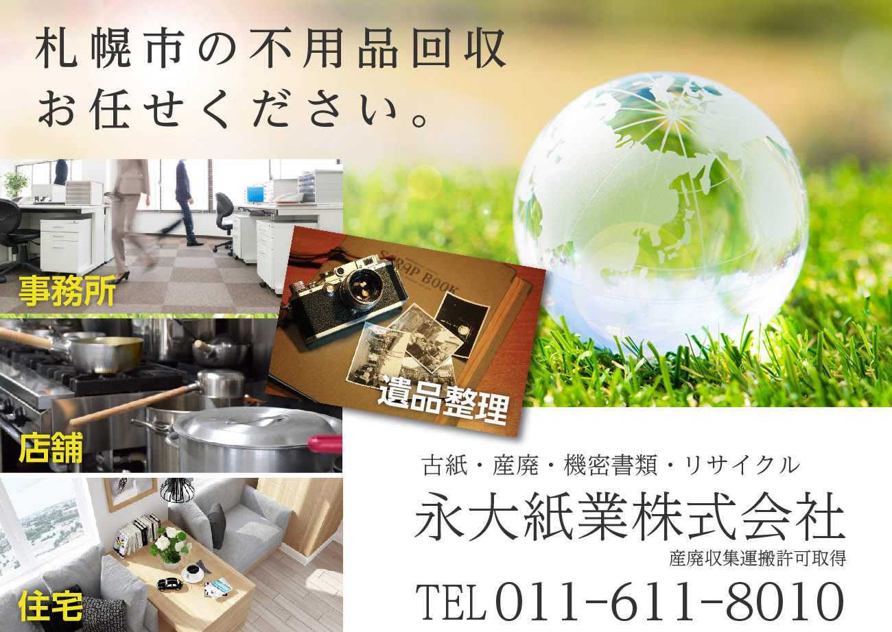永大紙業株式会社は、札幌で不用品回収・処理を行っています。