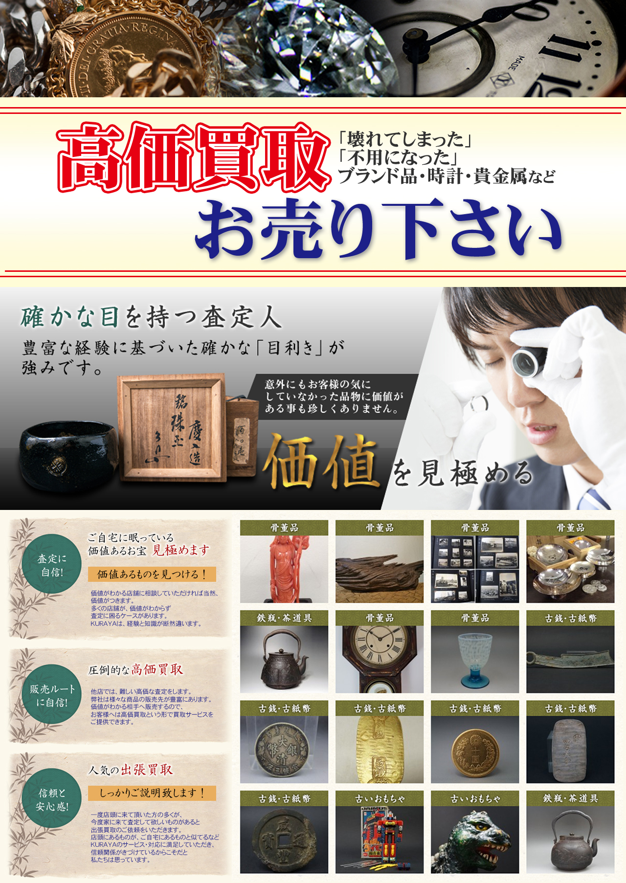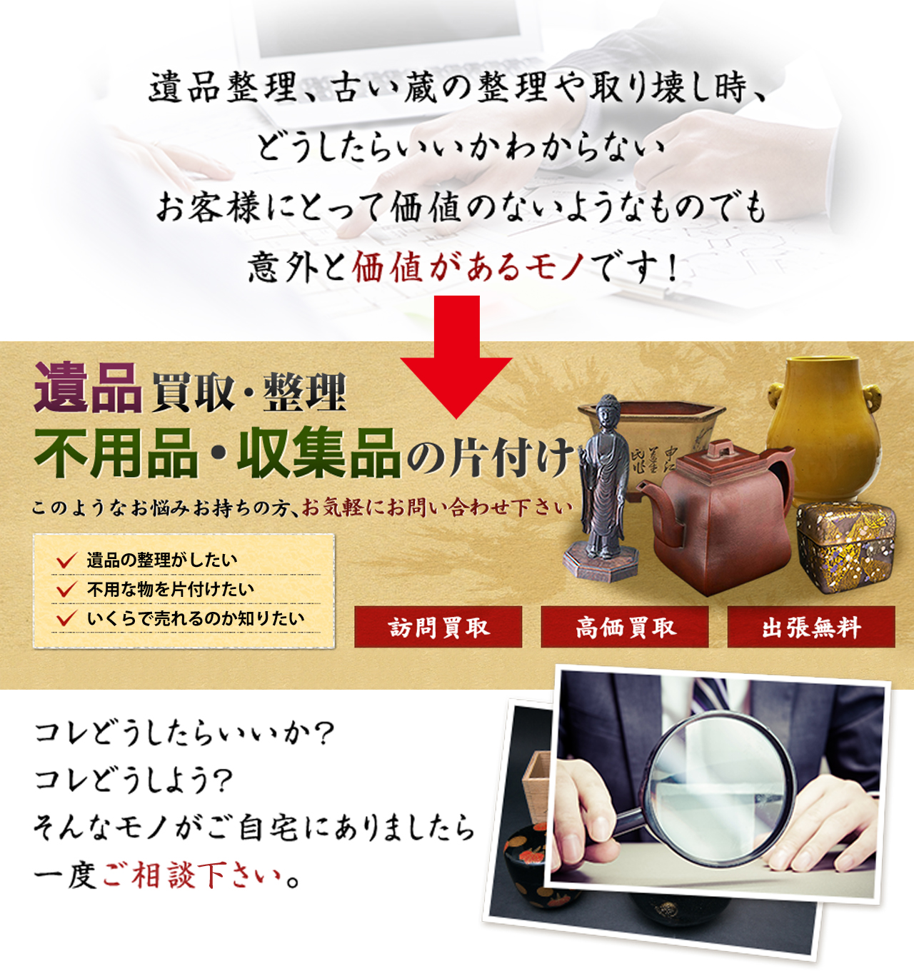 ブランド品からいらなくなった古物まで、捨てる前にお電話下さい。