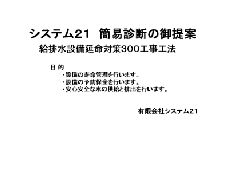 - 井戸ポンプ工事、衛生設備工事、給排水設備工事、空調設備工事、建築検査、水道衛生工事・保守、水道衛生設備工事、水道衛生設備保守、耐震診断、ビルメンテナンス