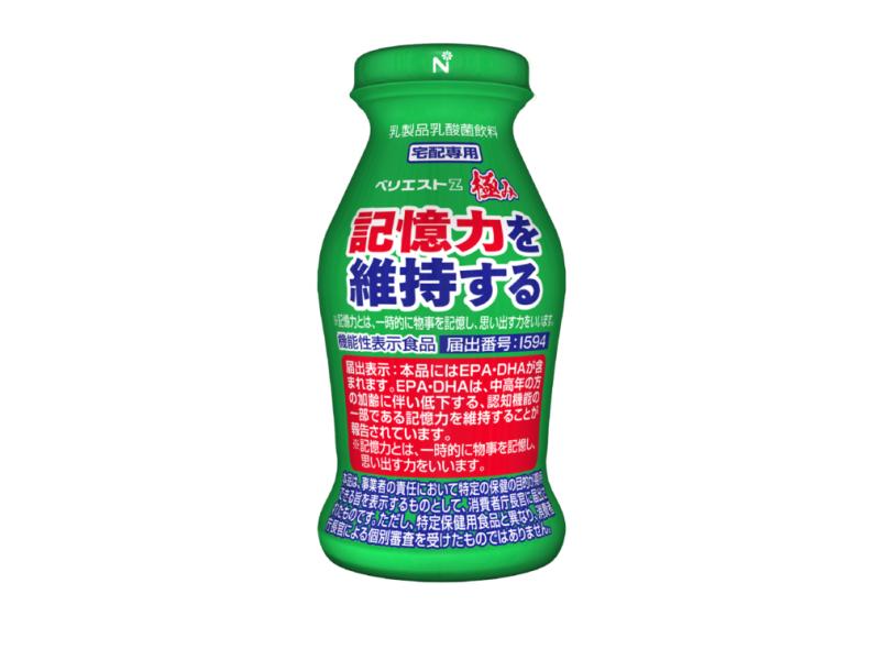 (株)ノーベルの乳酸菌飲料・ヨーグルト(宅配専用) 「記憶力を維持する」中高年の方にとって頼もしい機能性表示食品 ベリエストZ 極み 「記憶力を維持する」中高年の方にとって頼もしい機能性表示食品。 DHAプラスパントテン酸 栄養機能食品(パントテン酸・ビタミンC・ビタミンE) ◇DHA・・・400mg ◇EPA・・・100mg 65g / 60k カロリー 内容量65g 145円(税別) 157円(税込) 青汁、植物由来の軟骨成分、21種類の野菜発酵エキスが1本に! ベリエストA 青汁はケール・大麦若葉を使用 植物性グルコサミンプラスヒアルロン酸 栄養機能食品(ビタミンC・ビタミンE・鉄) ◇植物由来グルコサミン・・・・200mg ◇ヒアルロン酸・・・・・・・・・・・・5mg ◇クロレラ(原末換算)・・・・・・・・・・400mg 65g / 38k カロリー 内容量65g 140円(税別) 151円(税込) 「食後の血糖値の上昇を抑える」「お腹の調子を整える」 ノーベルアップ 本品にはイヌリンが含まれています。イヌリンは食後の血糖値の上昇をゆるやかにすることが報告されています。(血糖上昇抑制作用) イヌリンは善玉菌として知られているビフィズス菌を増やすことで、おなかの調子を整えることが報告されています。(整腸作用 ◇イヌリン 5.2g 65g / 44k カロリー 内容量65g 135円(税別) 146円(税込) 高麗人参エキス150mg配合! ミラクト さらにウコン・カシス・黒酢も入ったカラダめぐるオトナの乳酸菌飲料! 栄養機能食品(ビタミンC・ビタミンE) ◇高麗人参エキス・・・150mg ◇カシス抽出物・・・・65mg ◇ウコン抽出物・・・・30mg ◇米黒酢・・・・・・・780mg ◇クロレラエキス・・・200mg 65g / 36k カロリー 内容量65g 145円(税別) 157円(税込) キダチアロエとクロレラエキスでスッキリをプラス。 クロレラ アロエ ヨーグルト ビフィズス菌BB-12配合、さらに脂肪ゼロがうれしい! 栄養機能食品(カルシウム、ビタミンD、鉄) ◇クロレラ(原末換算)・・・400mg ◇脂肪ゼロ 85g / 56k カロリー 内容量85g 130円(税別) 140円(税込) 「中性脂肪を下げる」「記憶力を維持する」 DHA+EPAヨーグルト マグロのサラサラ成分DHA+EPAが1060mgも摂取できる 話題のDHA+EPAが1000mg以上も配合 機能性表示食品ヨーグルト 85g / 108k カロリー 内容量85g 170円(税別) 184円(税込)