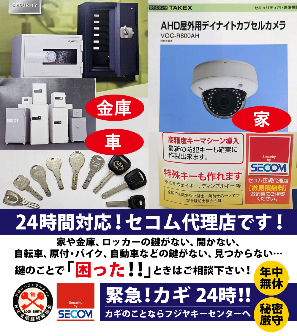 24時間対応!カギの専門店フジヤキーセンターへ!