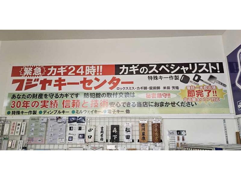 カギの事なら「フジヤキーセンター」へお任せ下さい! ●特殊キー 住宅用・自動車・自転車・デスク・ロッカー・キャビネット・金庫等 合カギ当店で作ります!! ディンプルキー ミルウェイキー(内溝キー・外溝キー) マグロックキー 電子キー コインロッカー用キー 自動ドア用キー 他 合カギ当店で作ります!! ●カギの救急 北近畿・近畿中部エリア他 出張致します カギ・錠で困ったら…、 カギのプロフェッショナル「フジヤキーセンター」まで。 ●無くなってしまったカギでも作れます。 ●金庫、車、玄関などの解錠、作製 ●玄関・店舗錠前交換いたします。 ●合鍵の作製(プロ中のプロの作る鍵をお試し下さい) ●防犯の相談も承ります。(ご予約下さい) SECOM 代理店・各金庫メーカー協力店・ロードサービス協力店 JBR他 多数加盟
