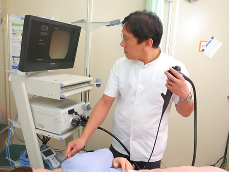 消化器内科 消化器内科では、食道、胃、小腸、大腸とそれに連なるだ液腺や肝臓、すい臓、胆のうなど広い領域の病気を扱います。 食欲不振や貧血、最近やせてきた…など体調不良を感じて内科を受診する方の多くは、消化器系に異常をきたしていることが多く、中には自覚症状のないまま病気が進行してしまっている可能性も…。 定期的な内視鏡検査で病気を早期に発見し、早期治療に努めましょう。 早期がんの場合は手術をせずに内科的な治療で治せる場合もあります。 当院の内視鏡治療は、敬遠されがちな上部消化管内視鏡検査(胃カメラ)を、細径内視鏡を用いて鼻から挿入することもできます。 患者様の負担をできるだけ軽く、そして正確に診断することをモットーとしております。 実施検査 ○上部消化管内視鏡検査 ○腹部エコー検査