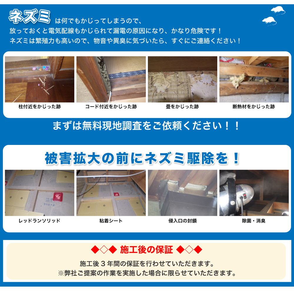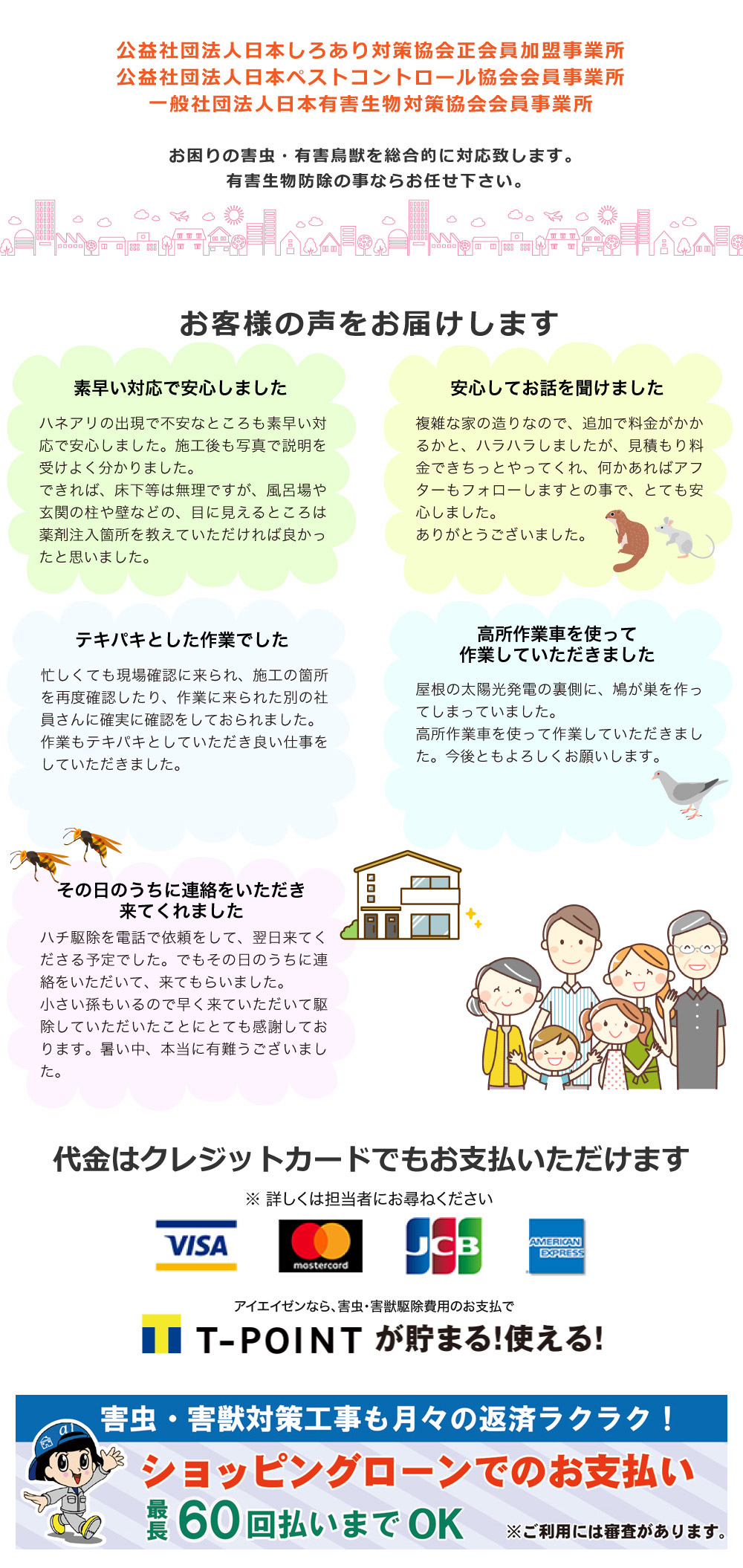 白あり・イタチ・アライグマ・ネズミ・ハトなど、害獣・害虫駆除なら私達あい営繕にお任せください!